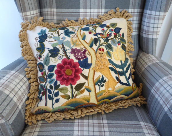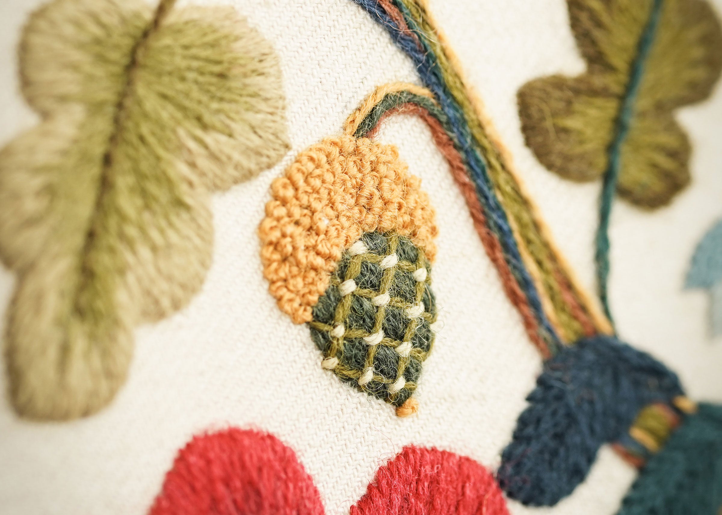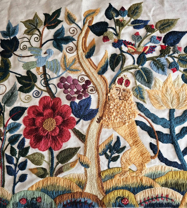 Revel in the historical elegance of The Restoration Pillowe Kit. This design is replicated from an extraordinary set of 17th Century Pillowes, which Phillipa has recreated in the original Jacobean colours. A substantial embroidery, this design offers a full-fat crewel experience.