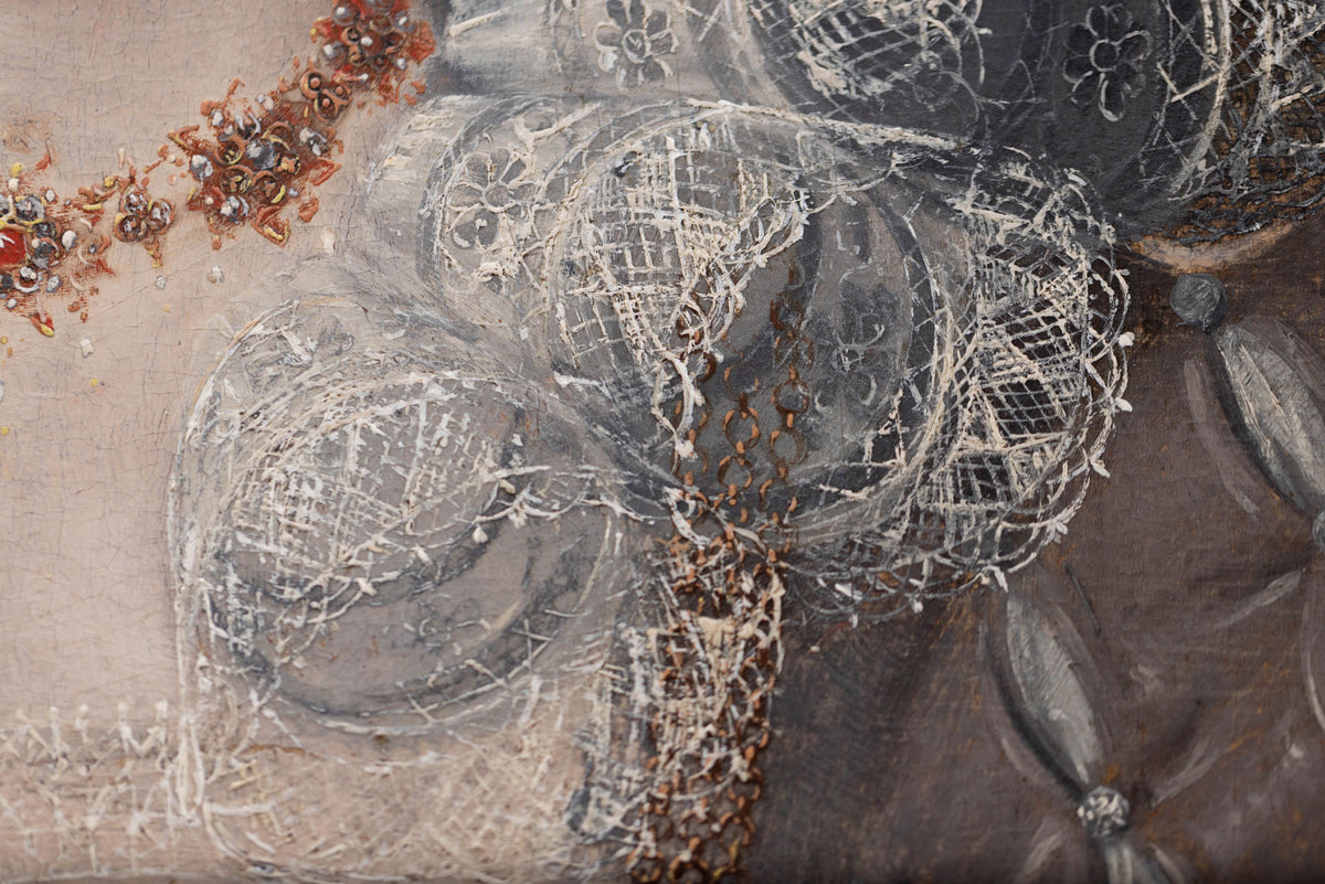 View the CollectionInspired by the richly embroidered stomacher in a 16th-century portrait at Glamis Castle, this striking design by Deborah Wilding captures the splendour of Tudor court dress. The painting of Lady Arbella Stuart, once considered a potential successor to Elizabeth I, provides the historical inspiration for this remarkable piece.