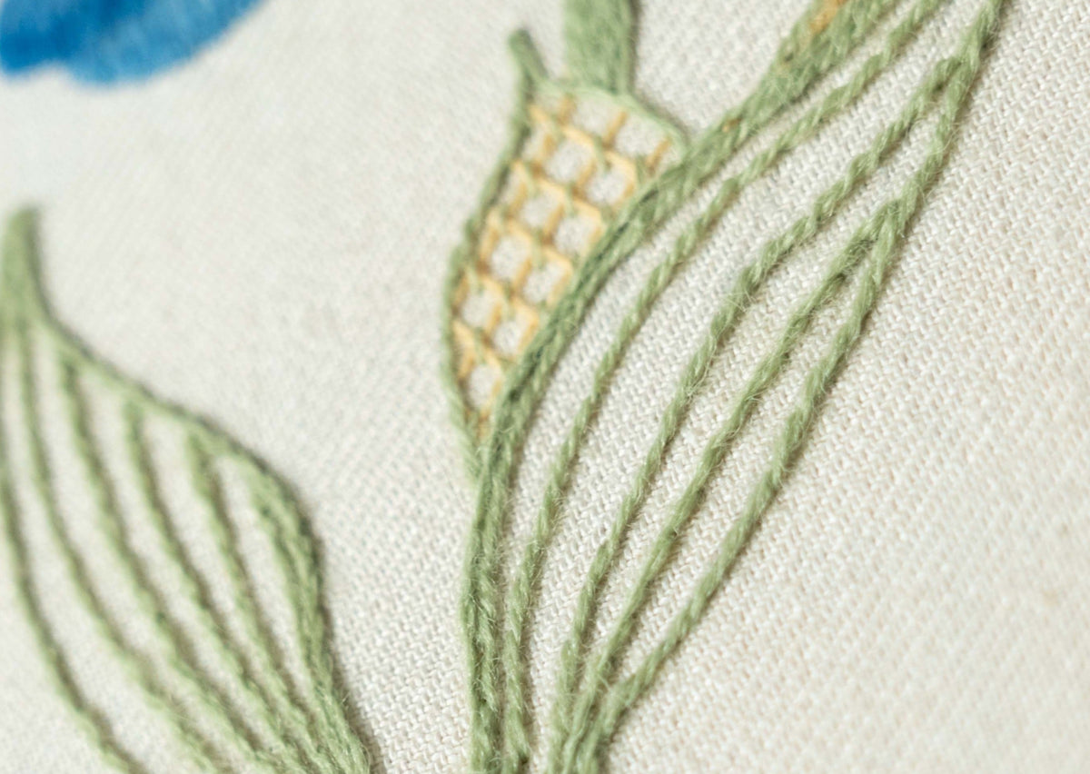 In this design, the fine wool embroidery threads encourage you to blend gently changing blues as you work long, elegant stitches on the delicate petals. Perfect for adding a burst of colour and life to your embroidery collection.