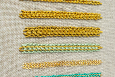 By the end of the day, you’ll have a sampler showcasing all four techniques, along with the confidence and foundational skills to apply Elizabethan braid stitch in your own metal thread embroidery projects.