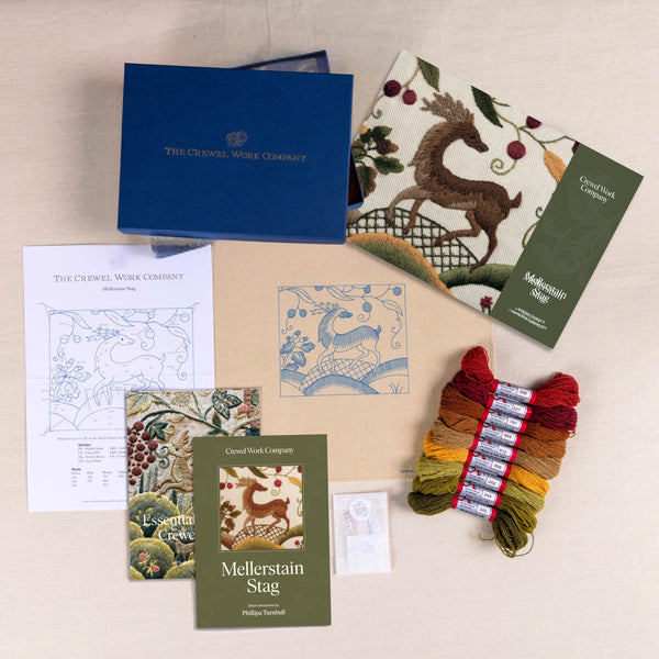 Embrace the stately elegance of the Mellerstain Stag Kit. Created with newcomers to crewel embroidery in mind, this classic Jacobean-inspired design is great for newcomers to crewel work and those looking for a smaller design to complete.