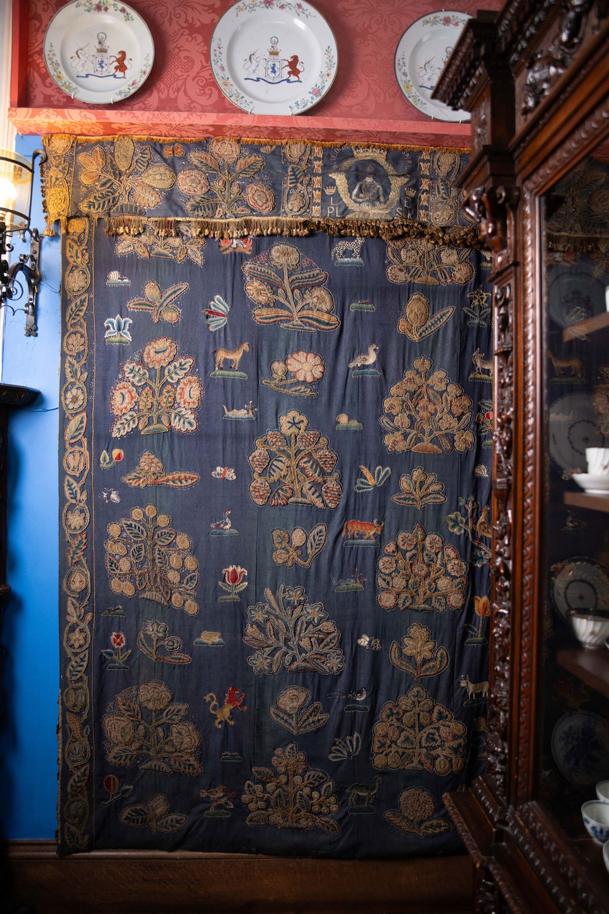 Stitched by Lady Helen Middleton (wife of the 3rd Earl of Strathmore) and her daughters, the original embroideries now hang in King Malcolm's Room within the castle.