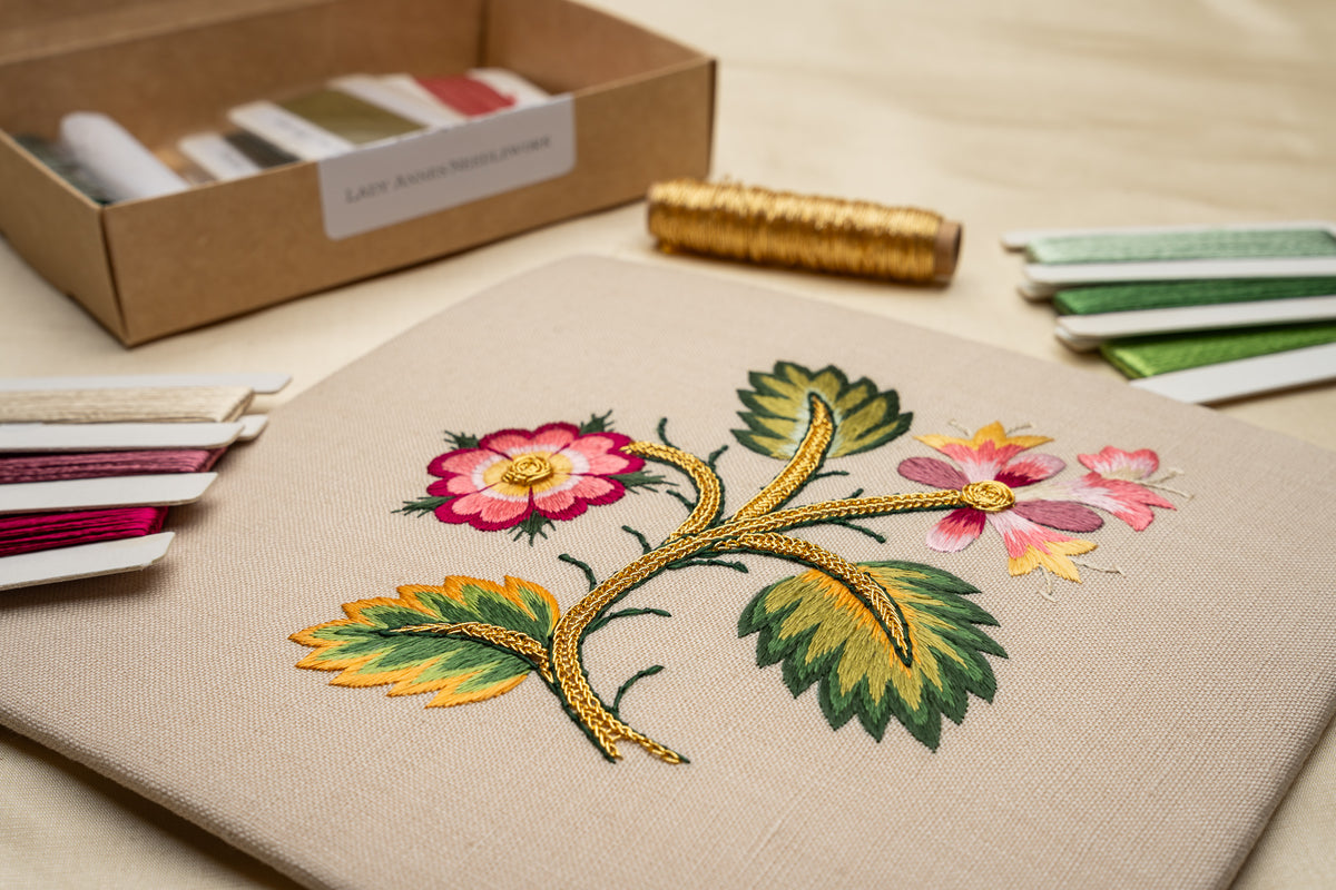 Deborah Wilding is a distinguished embroidery artist. With a background in fine arts, Deborah has developed a keen eye for detail and a deep appreciation for the natural world, which is reflected in her exquisite embroidery designs.