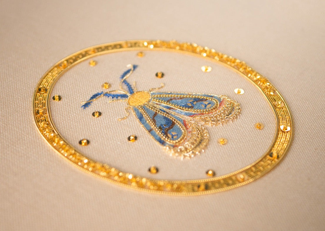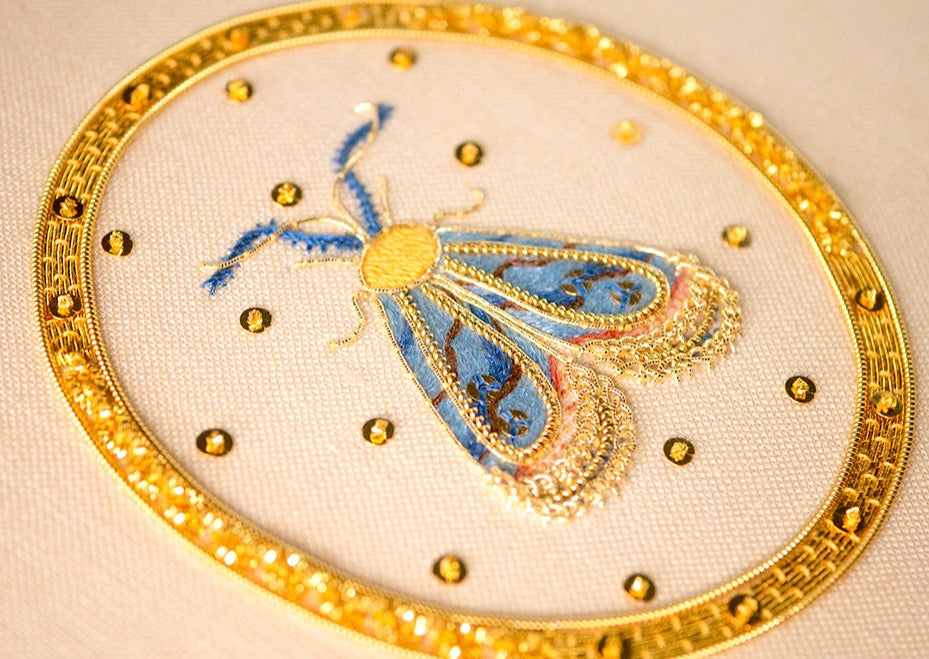 Explore ethereal beauty with the Elizabethan Moth Kit. Created by embroidery artist Zina Kazban, this design features a delicately detailed moth,