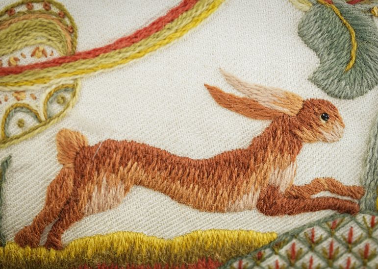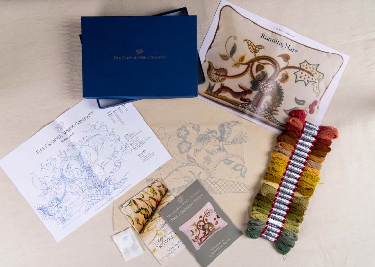 Part of a series of designs, which include classic as well as rare crewel work stitches, the Running Hare kit features plenty of variety to keep you entertained.