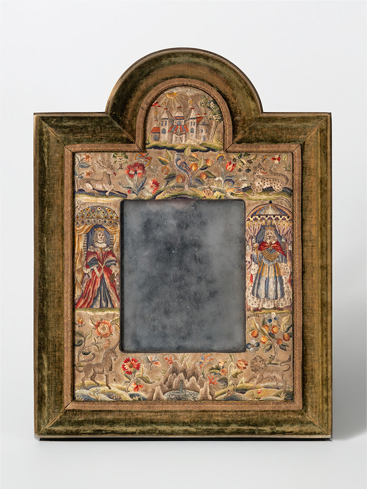 In a brief interlude from our Gawthorpe inspired designs, this latest design by Kate Barlow is inspired by the Feller Mirror, a 17th century embroidered mirror frame from the renowned Michael & Elizabeth Feller Collection. The original frame is currently the subject of an advanced year-long course in silk shading with Kate and this design was created to showcase some of the smaller motifs on the design.