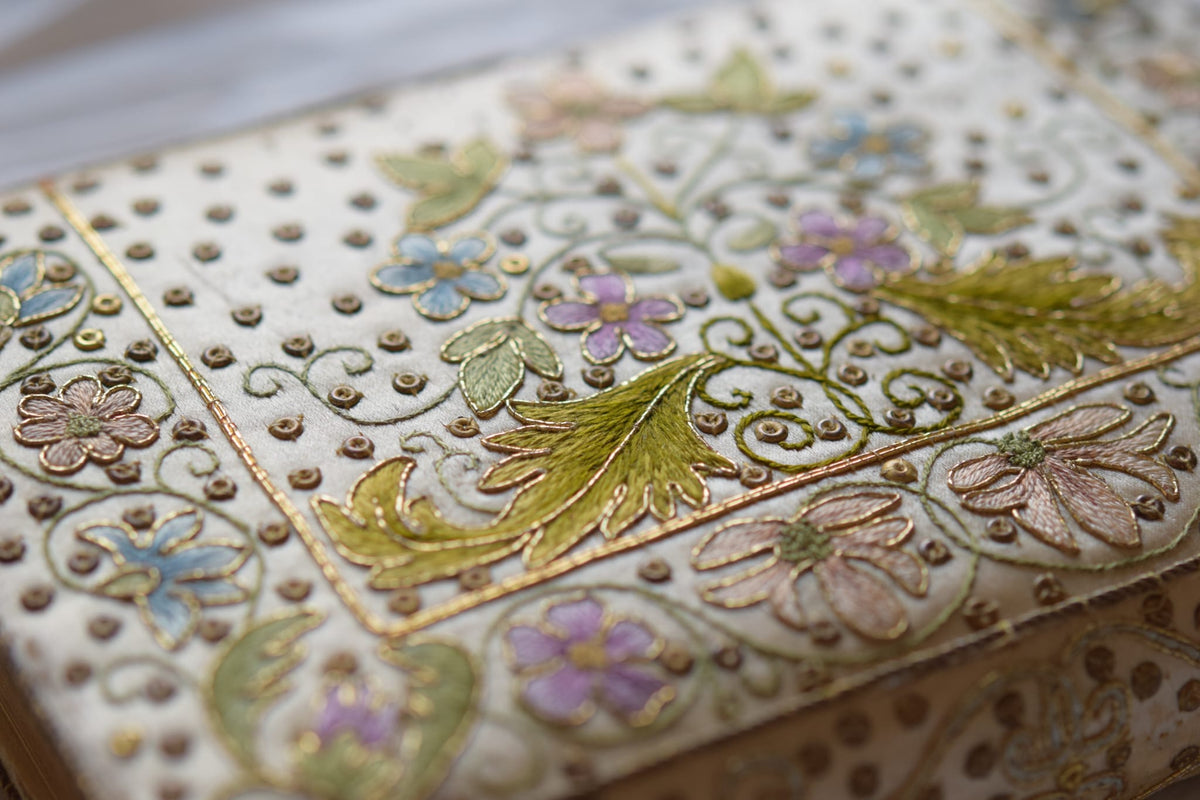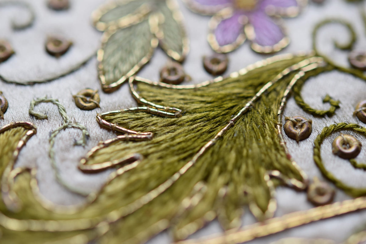 Holding a Masters in Education, Natalie Dupuis turned her experience in education to hand embroidery after having children, transforming passion for needlework into a thriving career, with a particular focus on the traditional art of or nué.