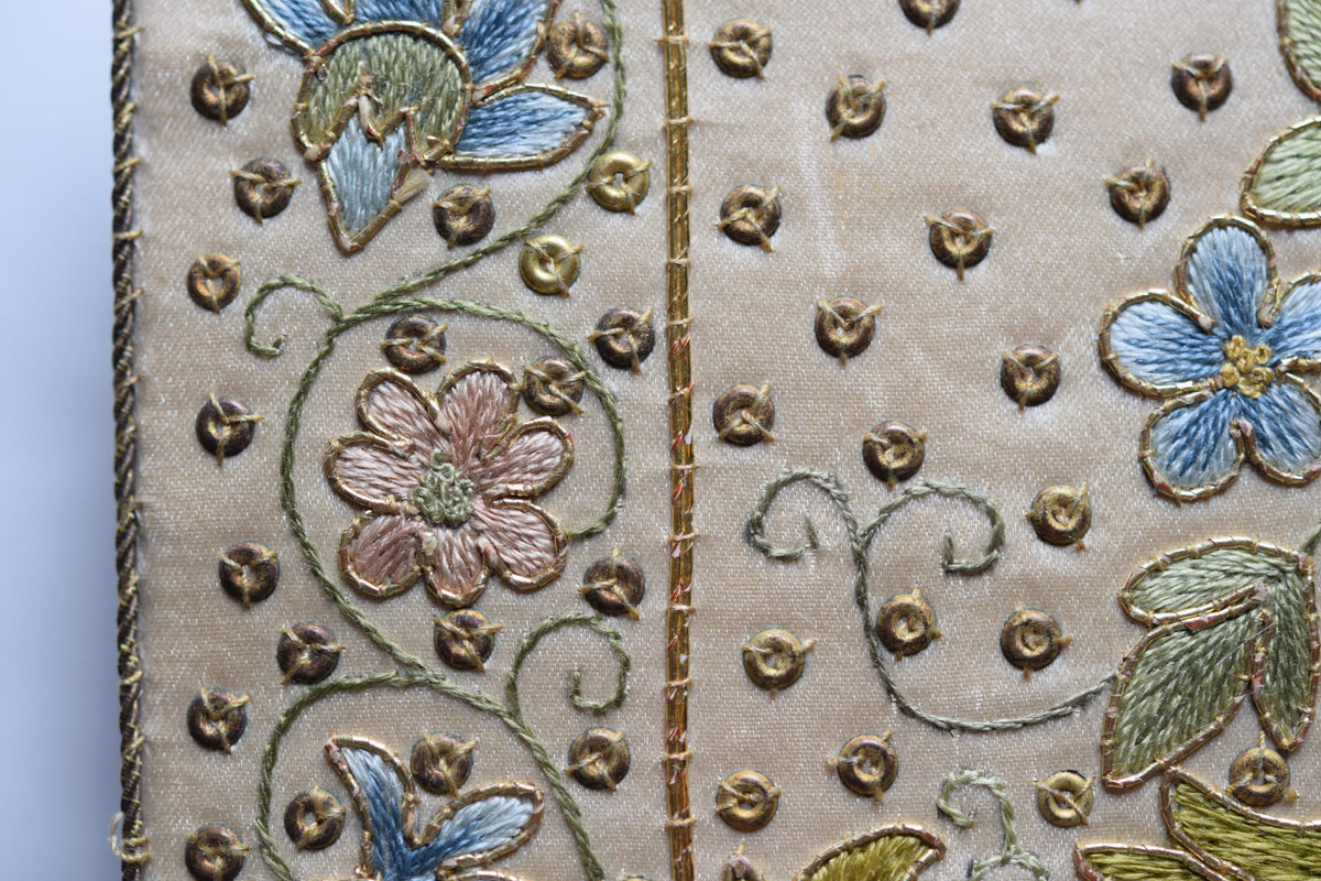 Throughout the day, Natalie will guide you step-by-step through the techniques involved including Long & Short stitch, couched passing thread, and applying spangles. She will teach you how to blend colours smoothly and achieve subtle dimension in your stitching. You will also learn how to add shimmering accents with gold thread, bringing a touch of luxury to your work. As you stitch, Natalie will share insights into her creative process and the inspiration behind the Book of Days collection.
