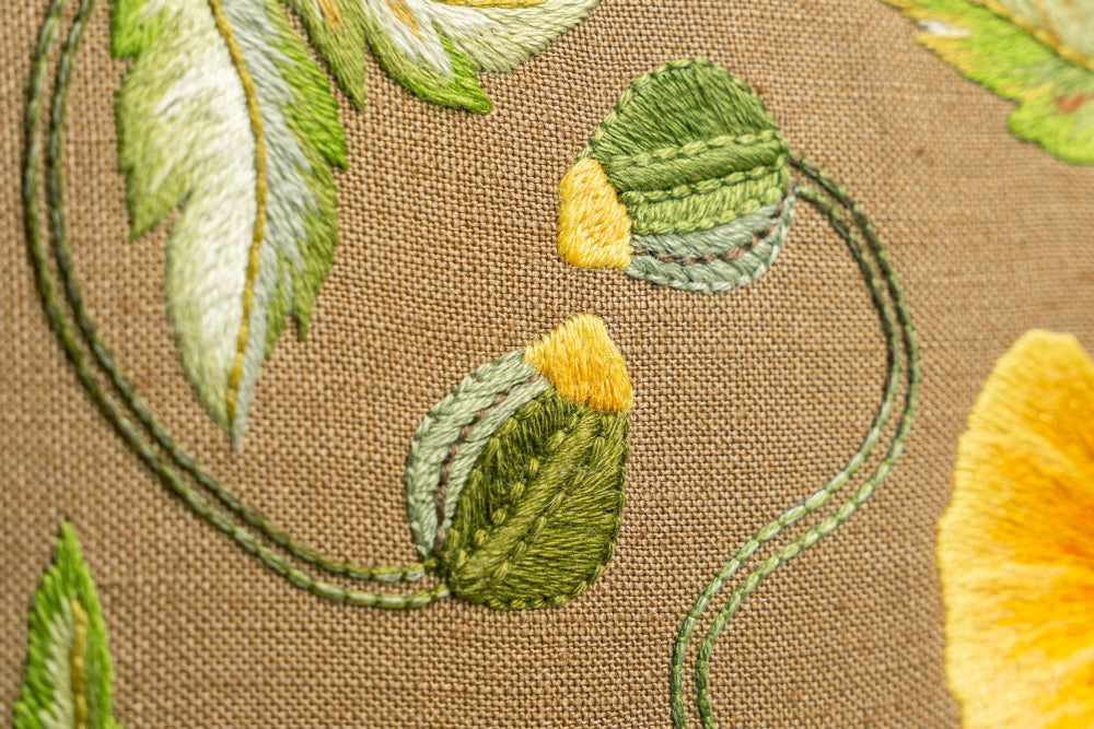 This vibrant design replicates a very special Art & Crafts embroidery in the Gawthorpe Textile Collection archives.