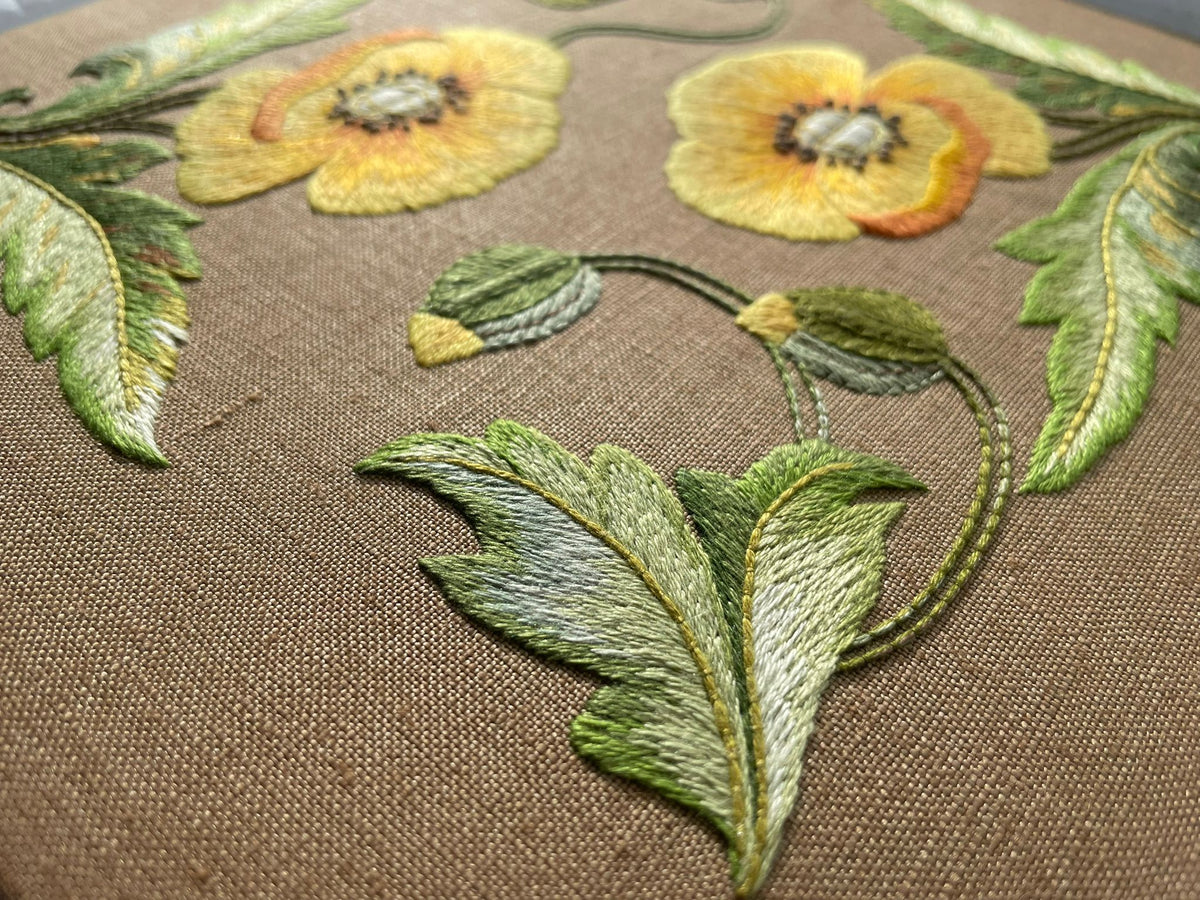 Long and Short, Split Stitch, Satin Stitch, Padded Satin Stitch, Surface Couching, Back Stitch, French Knots
