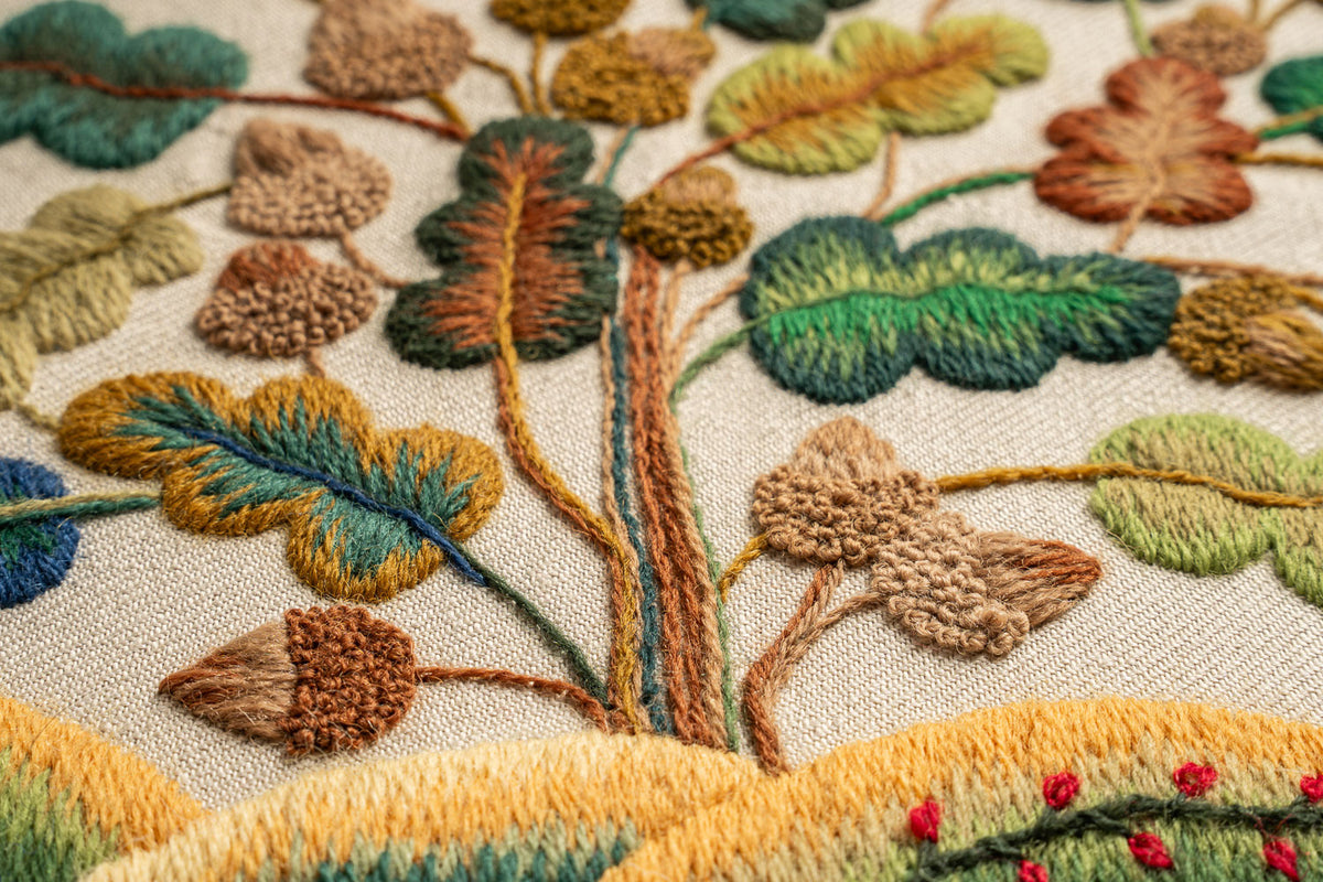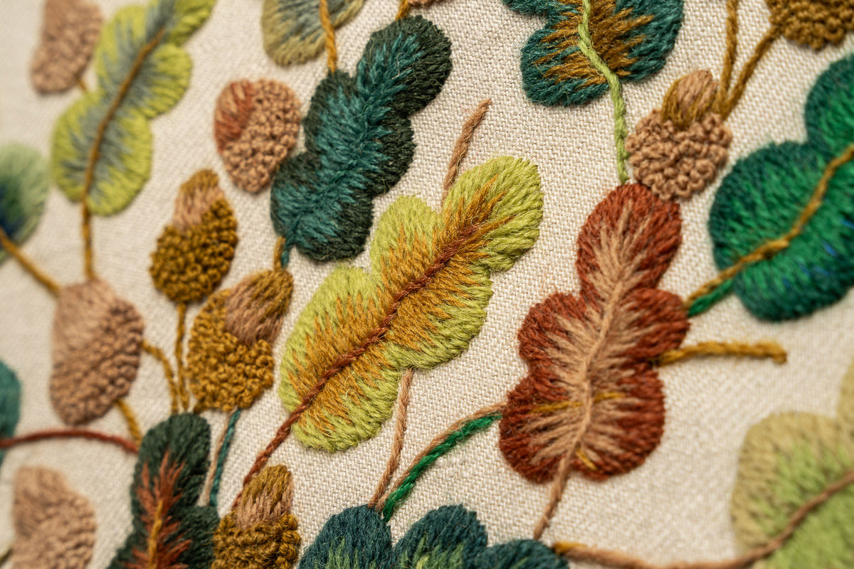 This design is the perfect introduction to the Gawthorpe Crewel Work range, providing a sample of some of Rachel's favourite techniques in the Arts & Crafts style we are so fond of.
