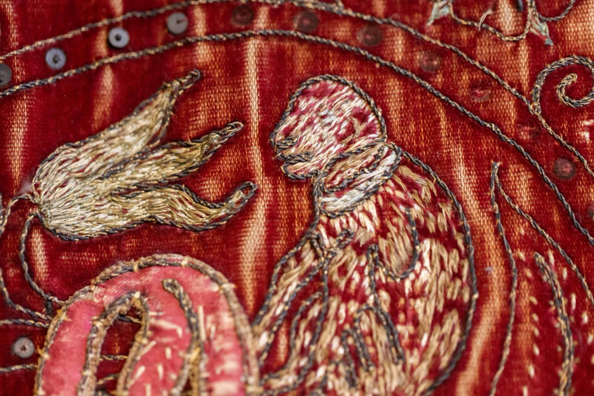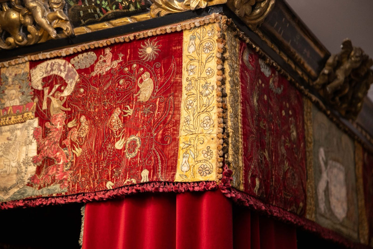 Inspired by a foxglove found on the historic Kinghorne Bed in the castle’s King’s Dressing Room, this design reimagines the original motif in sparkling gold couching and silk embroidery. During this two day class, Kate guides you through each technique as you bring this beautiful interpretation of the design to life. Incorporating Fly Stitch, Satin Stitch, Long & Short, Gold Couching and Applying Spangles this class is perfect for those dipping their toe into more complex silk and gold work techniques for the first time.