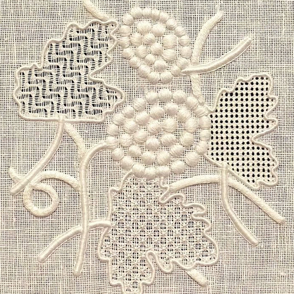 Discover the art of whitework in this beginner-friendly Glamis Whitework Class, taught by acclaimed Australian embroidery artist Di Kirchner. Over two days (four hours each day), you will learn foundational whitework techniques in a supportive, hands-on environment. Di, renowned for her expertise in whitework and reticella embroidery, will guide you step-by-step, ensuring you gain confidence and skill. Perfect for newcomers, this class offers a welcoming introduction to the elegance and precision of traditional whitework embroidery.