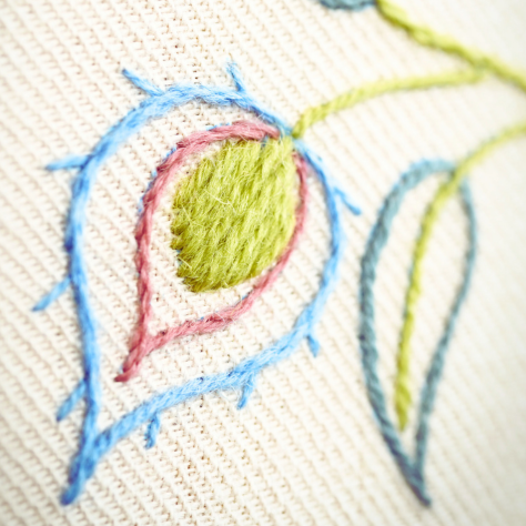 What stitches are featured in the design?