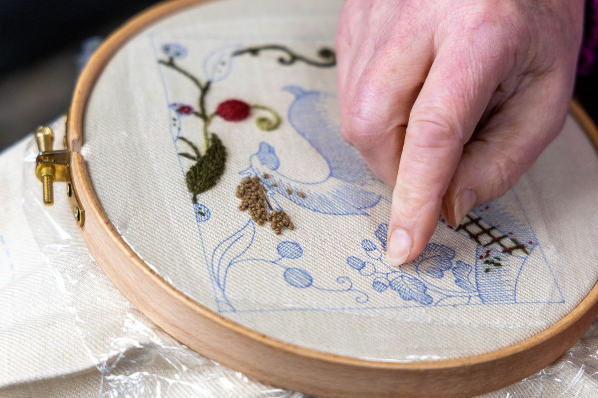 Embroidery calms the nervous system, promotes relaxation, and contributes to lower blood pressure, reducing stress for improved well-being.