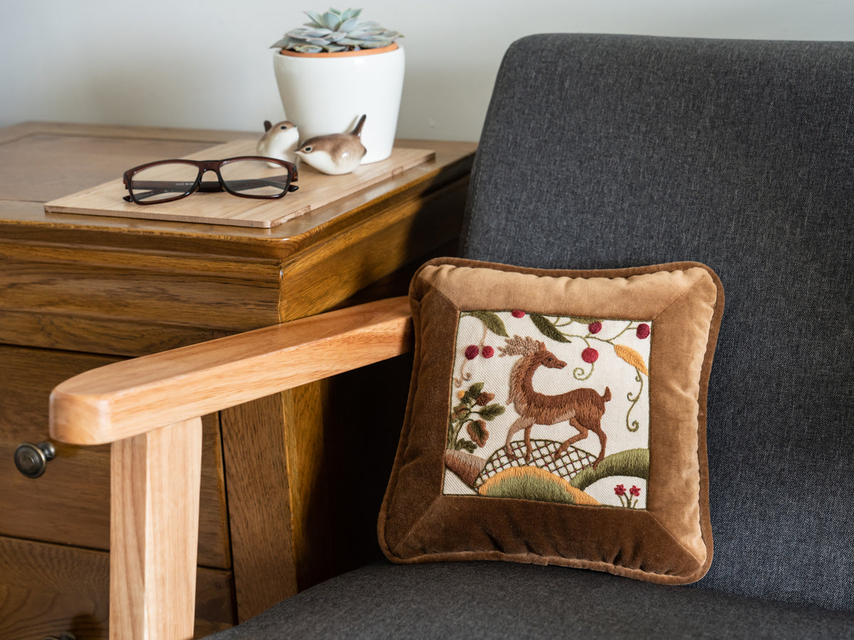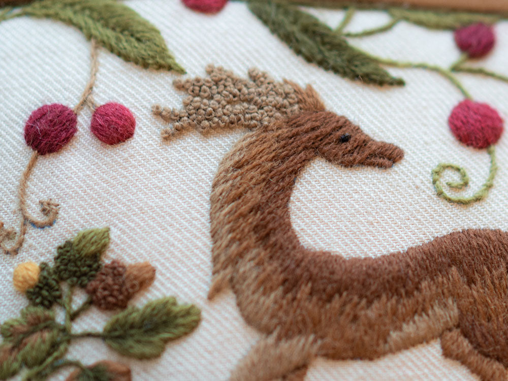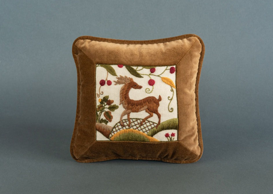 Embrace the stately elegance of the Mellerstain Stag Kit. Created with newcomers to crewel embroidery in mind, this classic Jacobean-inspired design is great for newcomers to crewel work and those looking for a smaller design to complete.