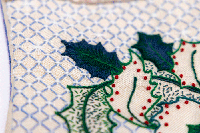 Stitched in the Jacobean style, this fun whimsical design features a selection of techniques to keep you entertained in the run up to Christmas.